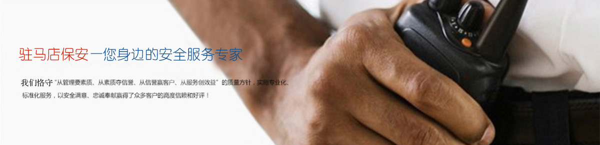 駐馬店市保安服務(wù)有限公司成立于2002年7月1日,2003年8月14日經(jīng)河南省公安廳豫公通[2003]304號(hào)發(fā)文批準(zhǔn),在工商行政機(jī)關(guān)登記注冊(cè),是一家具有獨(dú)立法人資格、具有正規(guī)資質(zhì),面向社會(huì)為廣大客戶(hù)單位和人民群眾提供安全服務(wù)的企業(yè)。公司2013年率先完成脫鉤改制工作,相繼被河南省公安廳、河南省總工會(huì)、共青團(tuán)河南省委評(píng)為“河南省第一屆先進(jìn)保安服務(wù)公司”,被河南省保安協(xié)會(huì)評(píng)為“河南省優(yōu)秀保安服務(wù)公司”,被河南省軍隊(duì)轉(zhuǎn)業(yè)干部安置工作小組、河南省人力資源和社會(huì)保障廳、河南省軍區(qū)政治部授予“自主擇業(yè)軍轉(zhuǎn)干部就業(yè)創(chuàng)業(yè)實(shí)習(xí)實(shí)訓(xùn)基地”,被共青團(tuán)駐馬店市委授予“青年文明號(hào)”榮譽(yù)稱(chēng)號(hào),被駐馬店市人力資源和社會(huì)保障局授予“職工工傷保險(xiǎn)和養(yǎng)老保險(xiǎn)工作先進(jìn)單位”、“誠(chéng)實(shí)守信先進(jìn)單位”。公司現(xiàn)為中國(guó)保安協(xié)會(huì)第四屆理事會(huì)會(huì)員單位,河南省保安協(xié)會(huì)第一屆理事會(huì)會(huì)員單位,是駐馬店市財(cái)政局管理的獨(dú)資國(guó)有企業(yè)。
